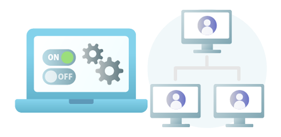 機能一括管理 - 管理コンソールで全端末の設定を一括制御。ユーザーごとのカスタマイズやグループ管理にも対応。導入後も運用工数を最小限に抑え、担当者の負担を軽減します。
