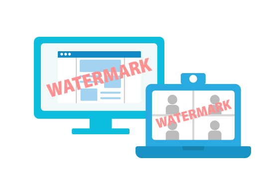 - 画面上にユーザー名・日時・IP などの透かしを表示し、Web会議カメラ映像にも自動付与